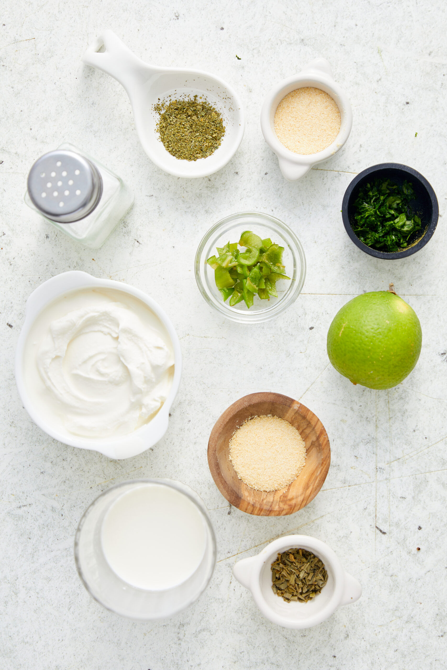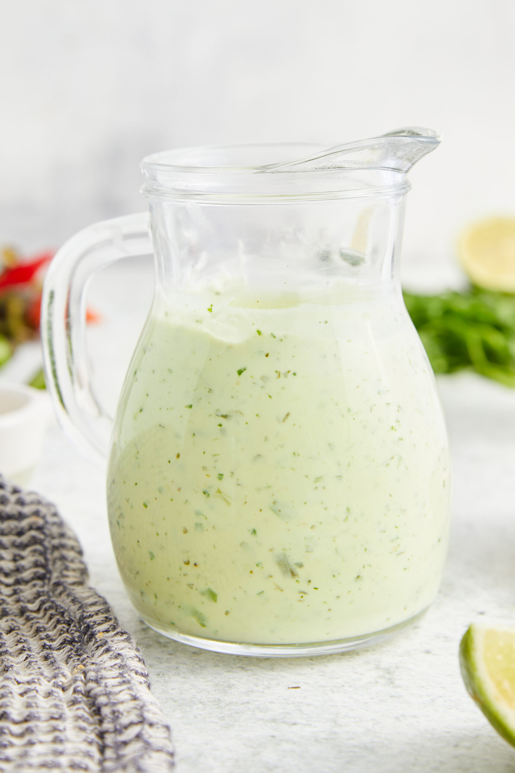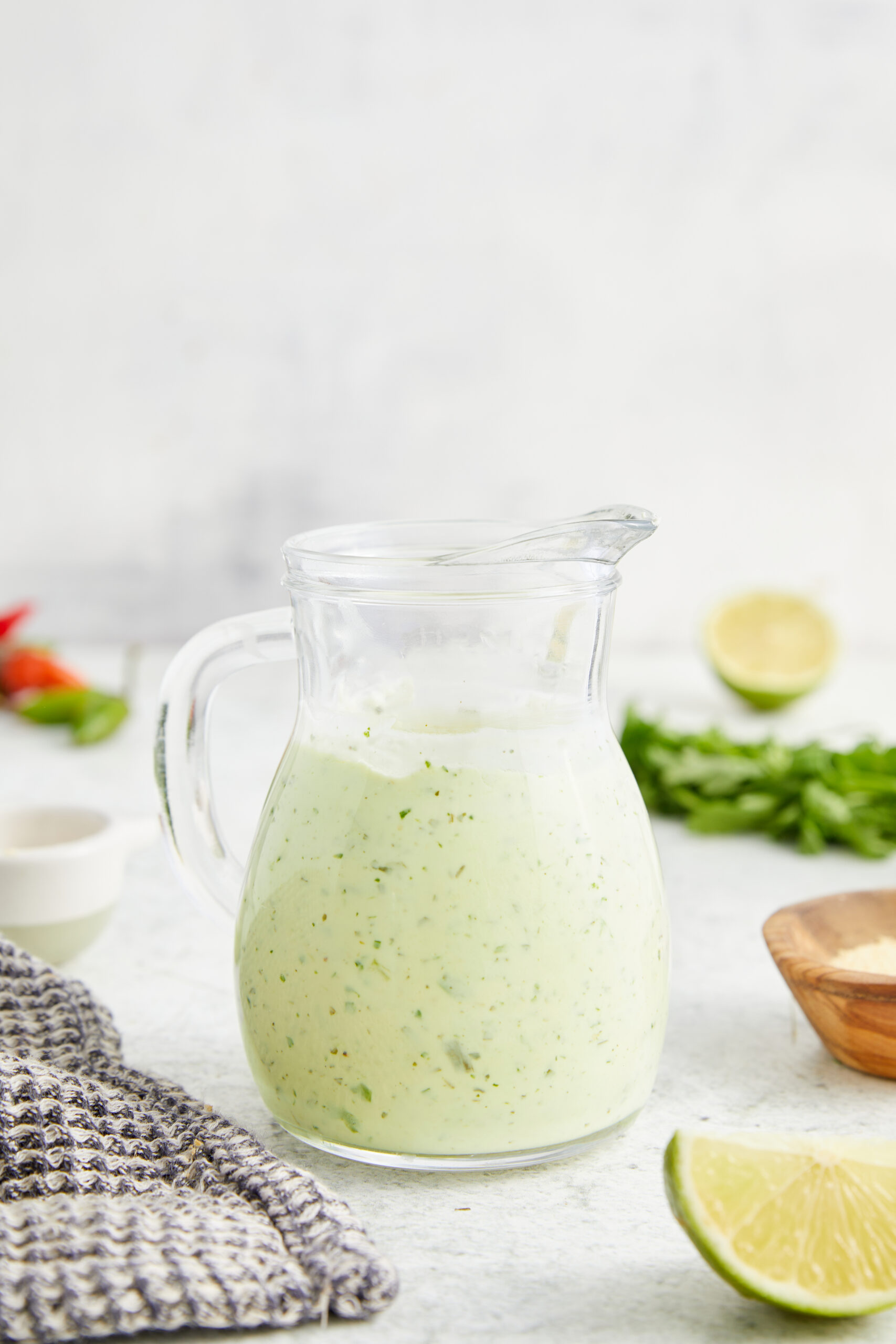 If you are not a fan of cilantro, you can easily swap it for chopped fresh parsley. The flavor profile will change a bit, but it will still be amazingly good, especially with the slightly sweet, tangy lime juice. Another easy swap is to use plain Greek yogurt instead of sour cream. If your yogurt is thick, you will likely need to use some buttermilk to thin it to your liking. You can go vegan with this recipe by substituting plant-based versions of sour cream and buttermilk.