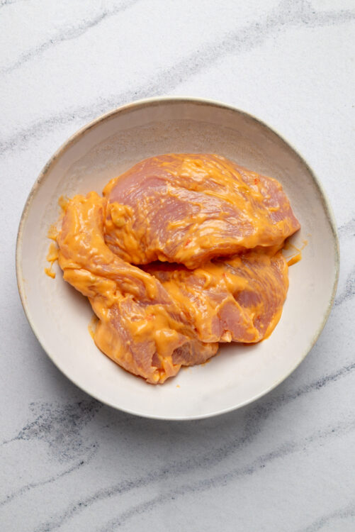 - Place the chicken breasts in a bowl or resealable bag. Pour the Baja Chipotle marinade over them. Cover and refrigerate for at least 30 minutes to let flavors meld.