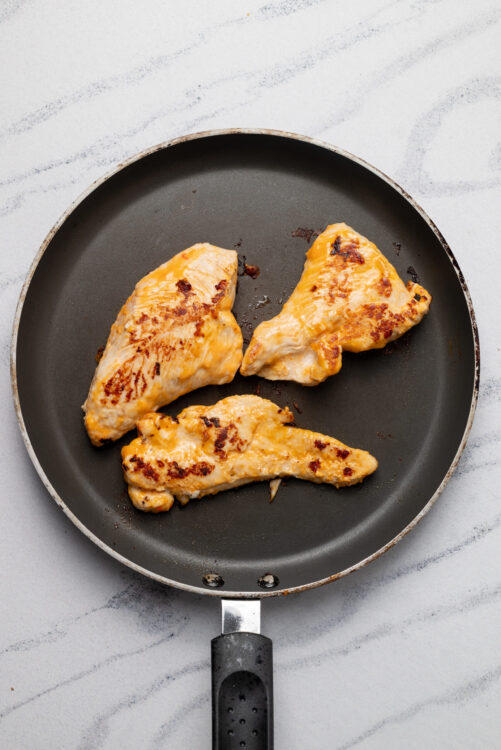 If you don’t have access to a grill or grill pan, you can sear the chicken breasts in a skillet for three to four minutes per side, then finish them in a 425°F oven for about 10 minutes, or until they reach an internal temperature of 165°F. I place the breasts on a parchment-lined baking sheet for easier cleanup.