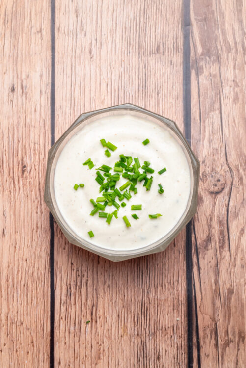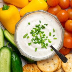 Refrigerate leftovers from this ranch dip recipe in an airtight container for up to 1 week. Plastic or glass will work, but I prefer using glass jars. Stir before serving, and don’t let it sit out at room temperature for more than 2 hours. Do not freeze this dip, as it will change texture and separate upon thawing.