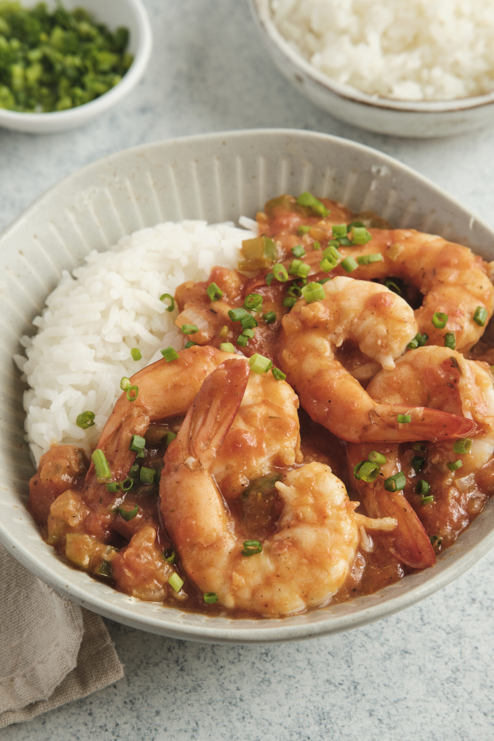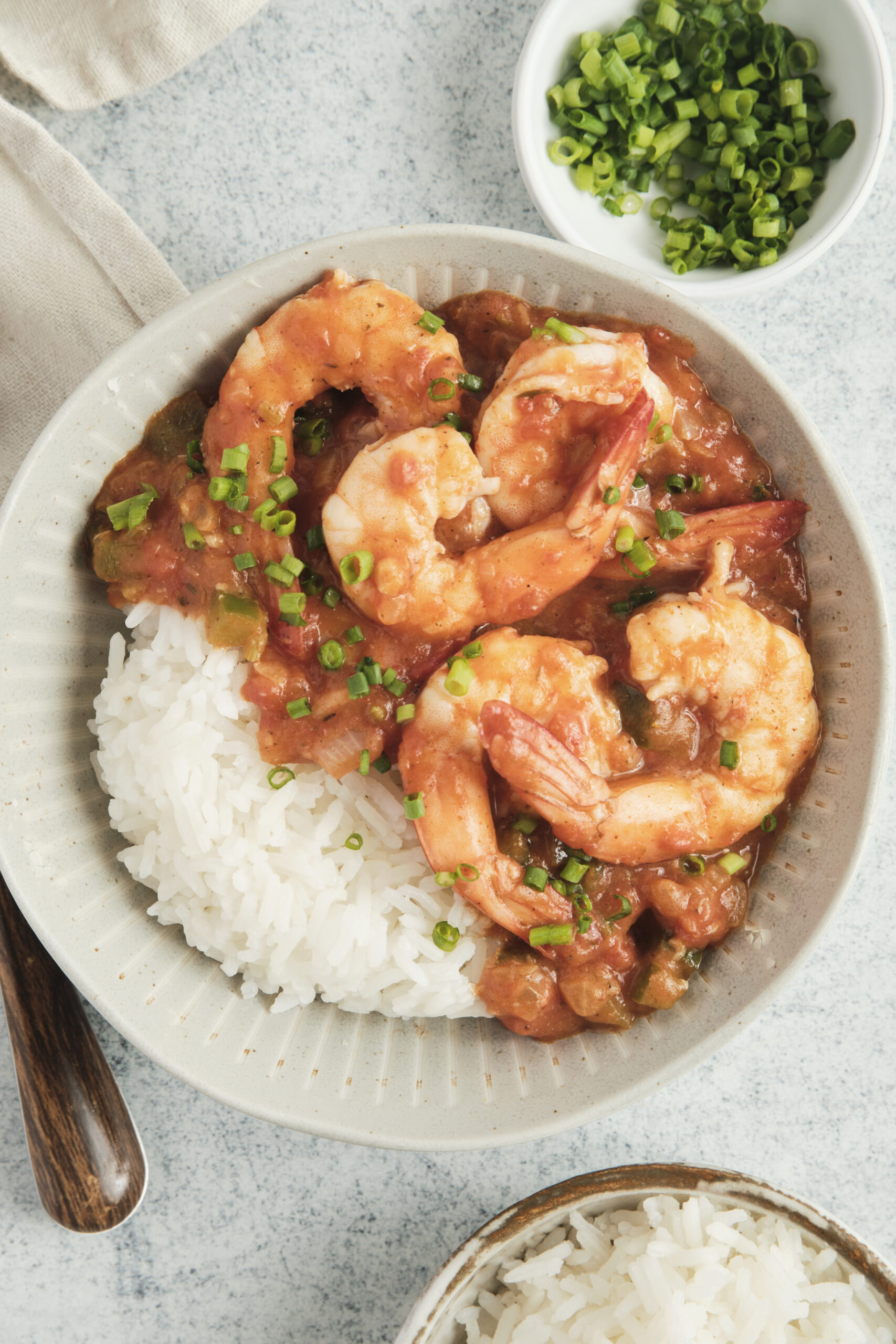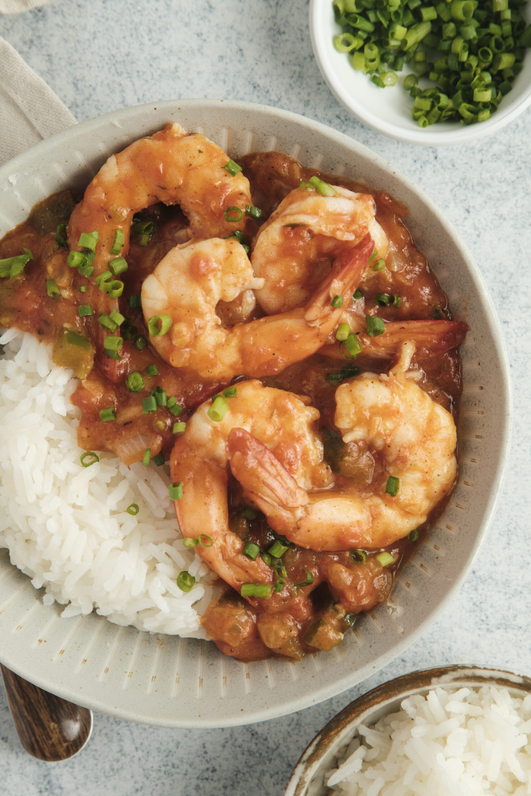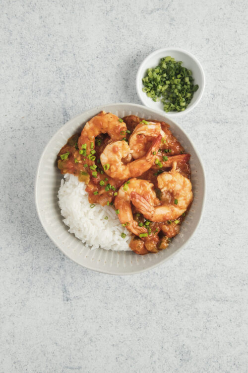- Spoon the shrimp Creole over cooked white rice and garnish with chopped green onion. Serve hot.