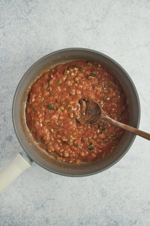 - Pour in the white wine (if using) to deglaze the pan. Then add the diced tomatoes with their juice, chicken stock, Worcestershire sauce, bay leaves, and a dash of hot sauce. Bring the mixture to a simmer and let it cook for about 20 minutes, stirring occasionally. Adjust seasonings as needed.