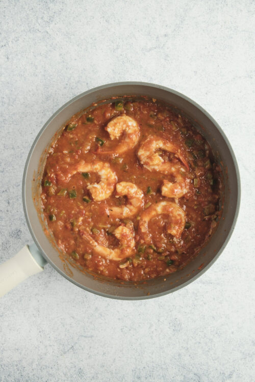 Allow leftover shrimp Creole to cool to room temperature, then refrigerate it in an airtight container for up to 3 days. Reheat it gently in a saucepan over medium-low heat until warm. Do not microwave the shrimp, as it can make them turn rubbery. You can also freeze the chilled leftovers in a freezer-safe container or zippered bag for up to 3 months. Defrost it overnight in the refrigerator before reheating.