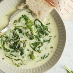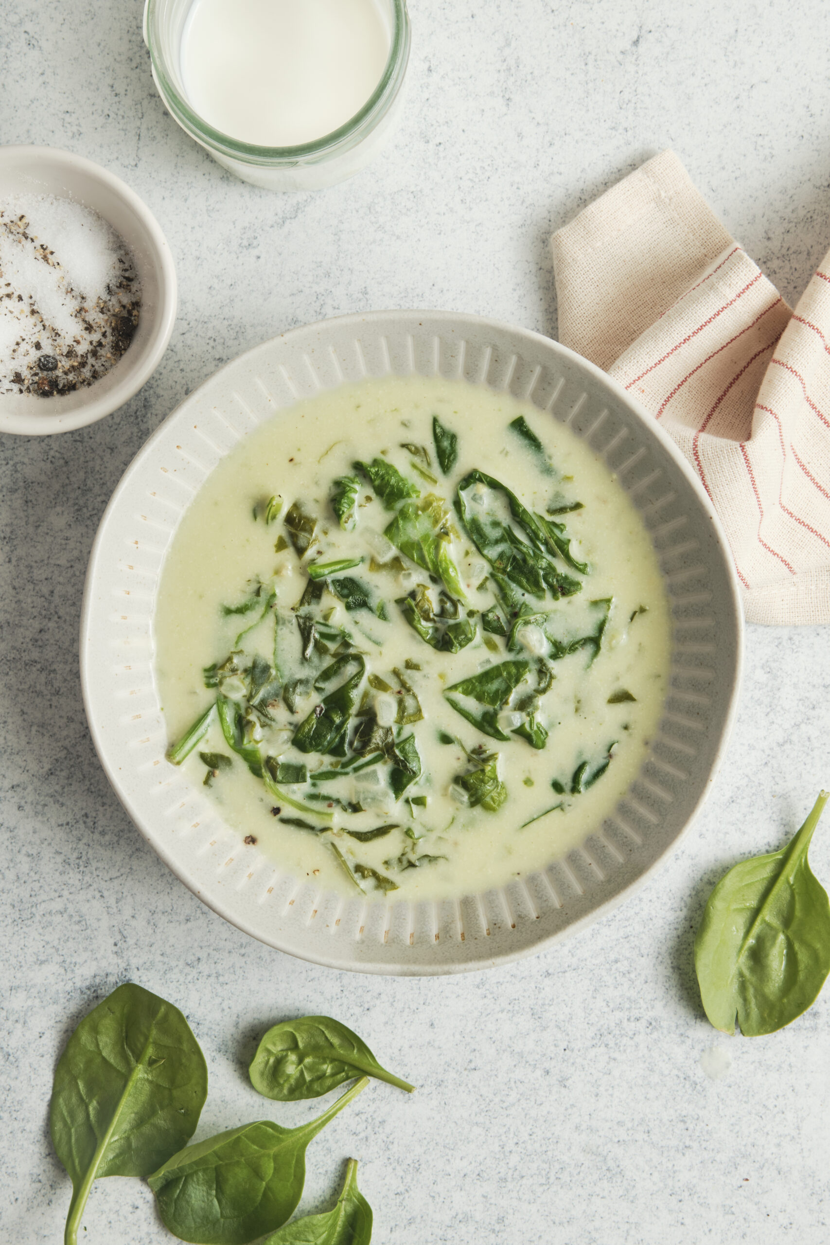 Allow leftovers from this spinach soup recipe to cool to room temperature, but don’t leave the soup out for more than 2 hours. Then, refrigerate the soup in an airtight container for up to 4 days. I don’t recommend freezing cream-based soups, as they often separate and become grainy upon thawing and reheating. To reheat the refrigerated soup, place it in a pot over medium heat and stir occasionally until warm.