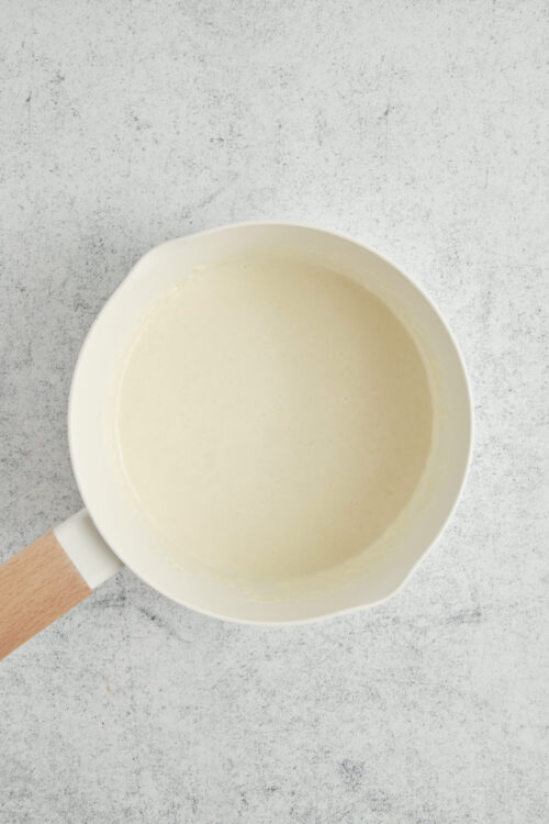 - In a small saucepan, melt the butter over medium heat. Whisk in the all-purpose flour and cook for 2 minutes until the mixture is smooth and free of the raw flour taste. Slowly whisk in the half-and-half and continue cooking until the mixture thickens, about 10 minutes.